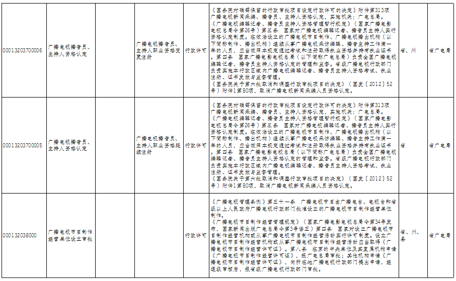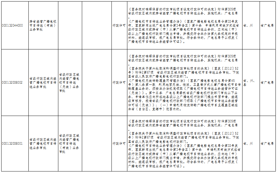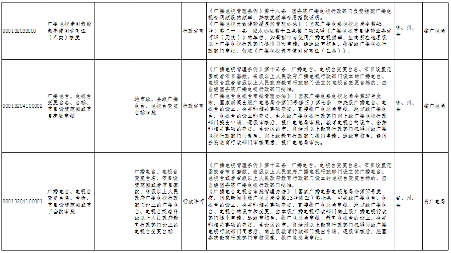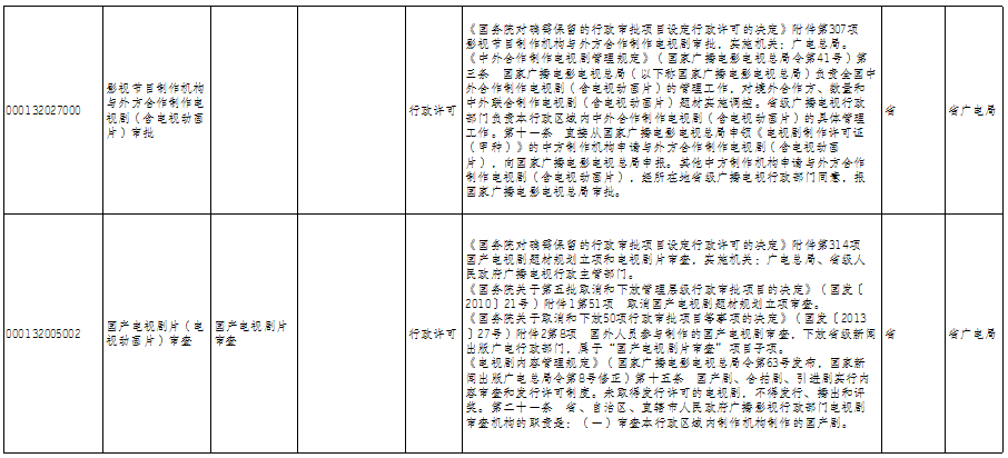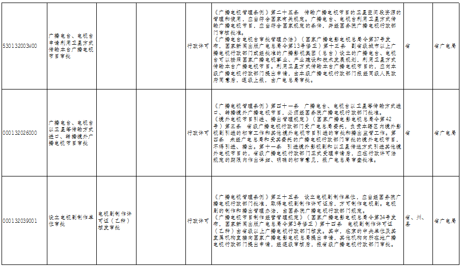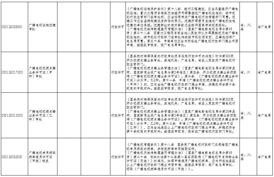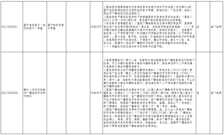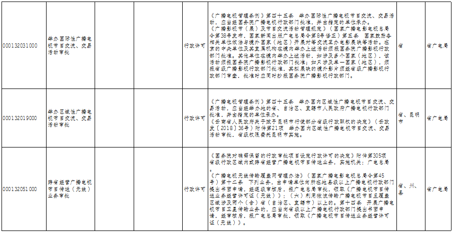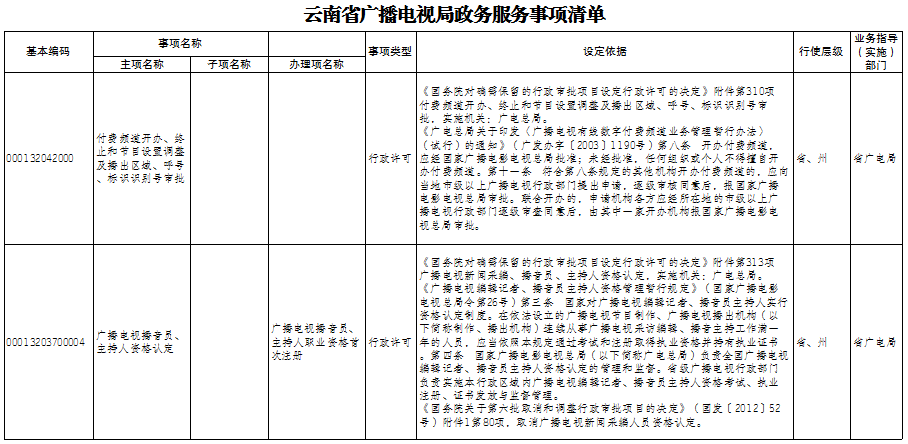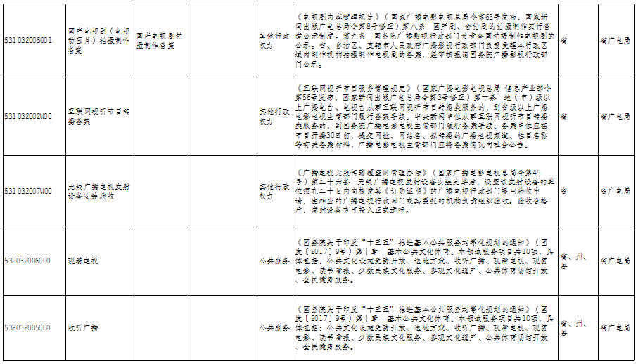 云南省广播电视局政务服务事项清单